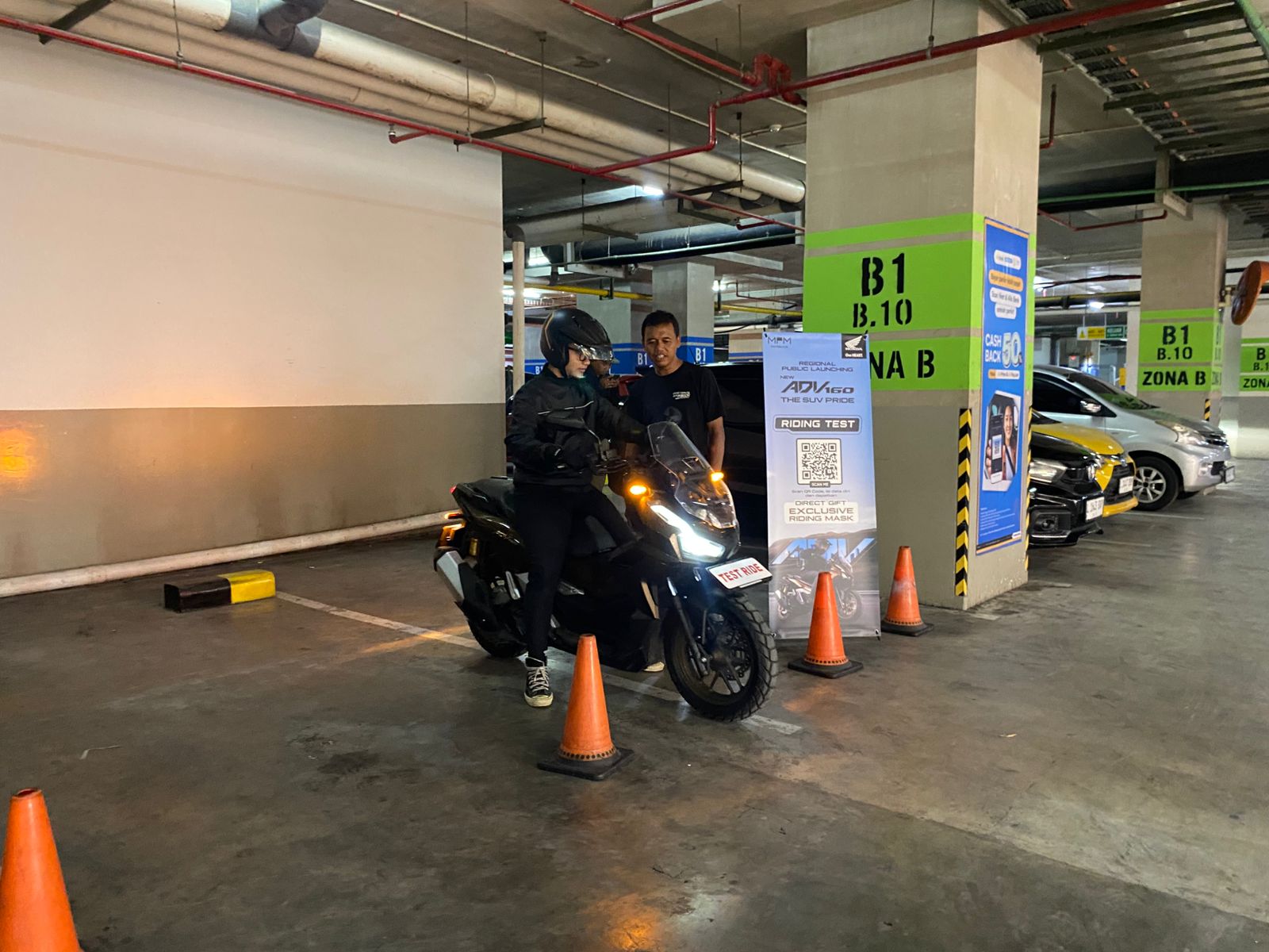Pengunjung dapat mencoba langsung ketangguhan dan kenyamanan New Honda ADV160 melalui riding test area yang dibuka selama event berlangsung. Pengunjung bisa merasakan performa mesin 160cc eSP+ yang bertenaga, posisi berkendara yang nyaman, serta fitur canggih Honda RoadSync yang menghubungkan pengendara dengan smartphone secara praktis.