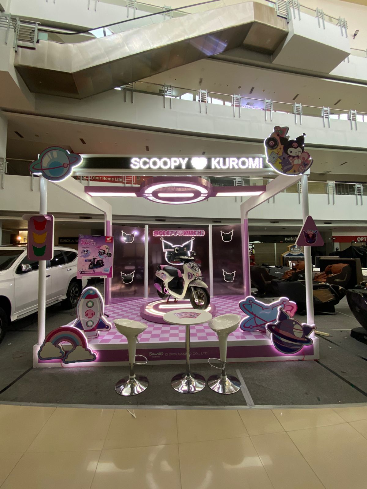 Pameran ini menjadi kesempatan spesial bagi konsumen untuk melihat secara langsung tampilan Scoopy Kuromi Limited Edition, skutik fashionable dengan desain lucu, unik, dan berkarakter. Dua pilihan warna, Kuromi Black dan Kuromi White, menjadi daya tarik utama yang dipadukan dengan aksesoris bertema Kuromi berwarna ungu, menciptakan gaya yang playful dan elegan khas anak muda masa kini.