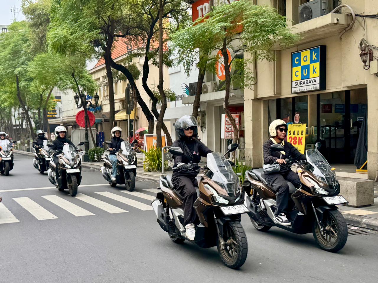 Saat melewati kawasan heritage seperti Tugu Pahlawan, Jembatan Merah, hingga Balai Kota Surabaya, para peserta memanfaatkan Honda RoadSync untuk navigasi dan menerima notifikasi secara terhubung. Fitur ini membuat city ride terasa lebih modern dan sesuai dengan gaya hidup para lady bikers yang aktif bergerak. Kenyamanan tambahan juga hadir dari seat height yang lebih rendah, sehingga pengendara lebih mudah mengontrol motor saat berhenti maupun bermanuver di tengah keramaian kota.