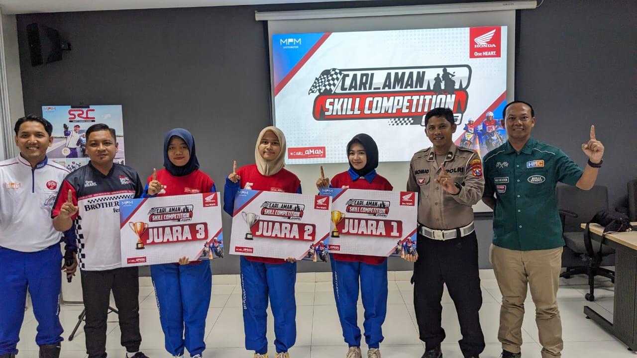 Sidoarjo, — PT Mitra Pinasthika Mulia (MPM Honda Jatim), distributor sepeda motor Honda wilayah Jawa Timur & NTT, kembali menggelar kegiatan edukasi keselamatan berkendara melalui #Cari_Aman Skill Competition yang kali ini dikemas dengan komunikasi kampanye terbaru “Jago Cari Aman biar Happy”. Kegiatan ini menjadi bagian dari upaya MPM Honda Jatim untuk meningkatkan awareness masyarakat terhadap keberadaan MPM Safety Riding Center sebagai pusat pelatihan berkendara resmi yang modern dan lengkap di Jawa Timur.