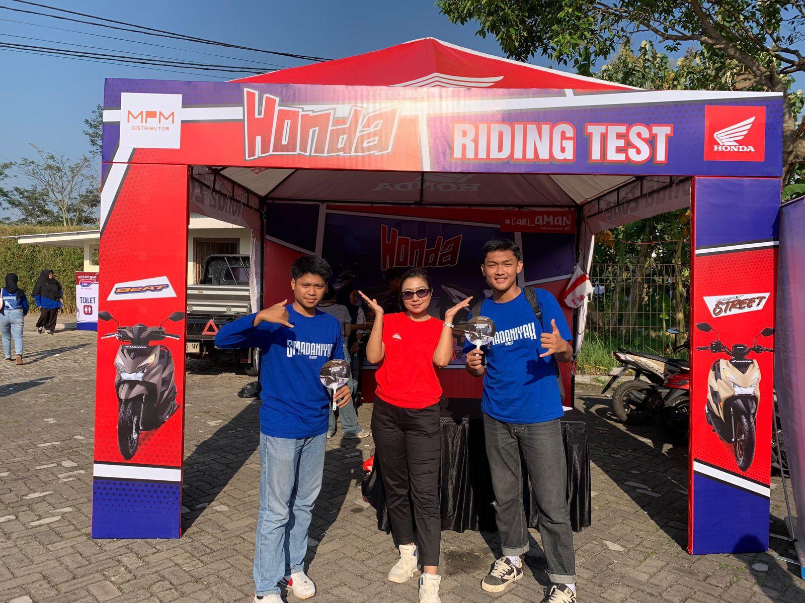 Peserta yang berhasil menyelesaikan tantangan berkesempatan mendapatkan merchandise eksklusif dari MPM Honda Jatim.