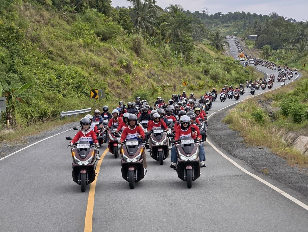 Perjalanan menuju Pantai Prigi 360 menjadi salah satu momen yang paling dinikmati peserta. Rute yang dilalui melewati Jalur Lintas Selatan (JLS) menghadirkan panorama alam pesisir yang memanjakan mata. Kenyamanan berkendara semakin terasa saat peserta menikmati perjalanan panjang tersebut dengan Honda PCX, didukung posisi berkendara yang ergonomis serta fitur Honda RoadSync yang membantu konektivitas selama riding, sehingga perjalanan terasa lebih nyaman, praktis, dan menyenangkan.