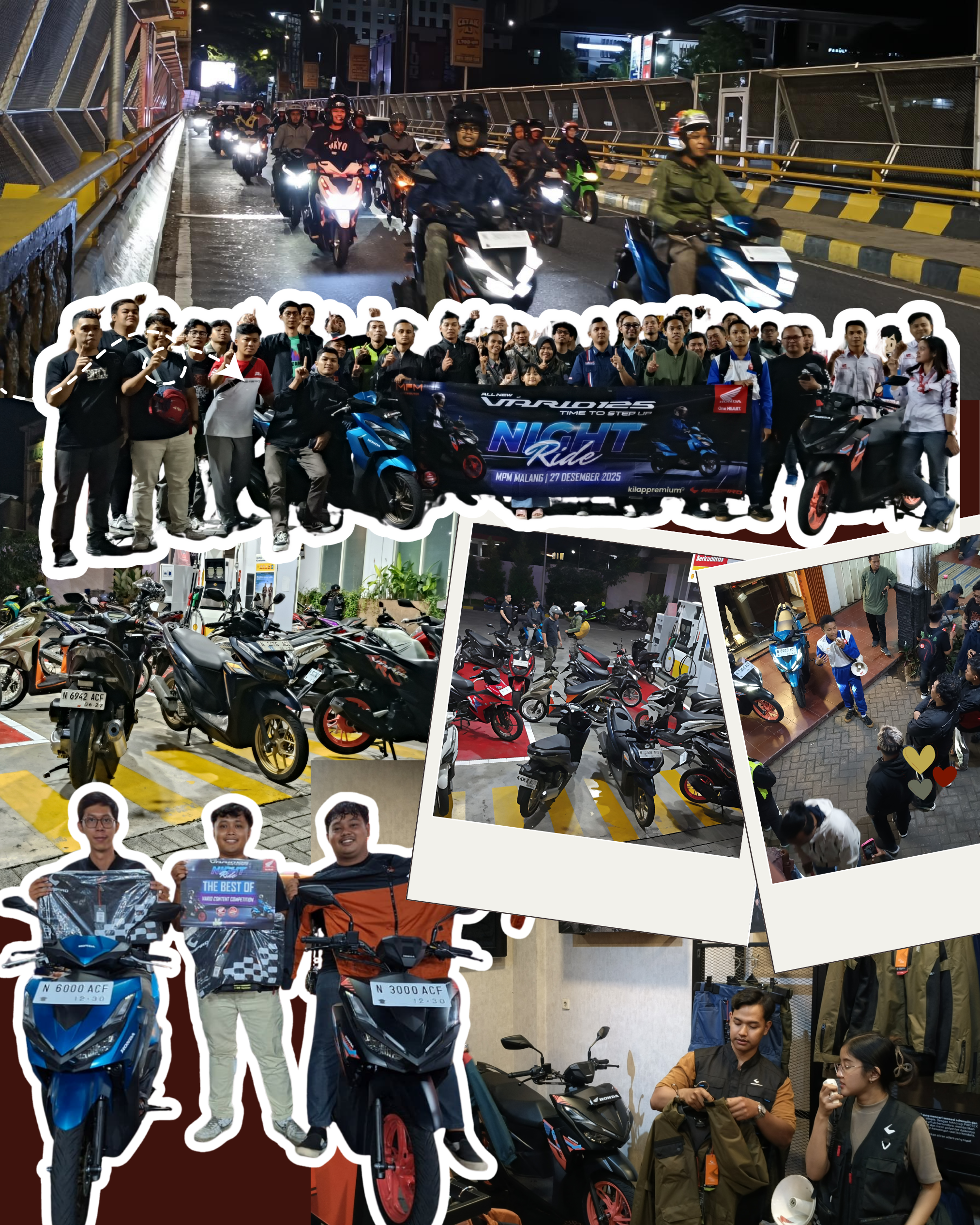 Mengusung tema “Time to Step Up – Night Ride”, kegiatan ini diikuti oleh 40 peserta yang berasal dari komunitas Honda Vario serta berbagai komunitas lain yang tergabung dalam Paguyuban Honda Malang. Para peserta memulai perjalanan dari Respiro Simpang Wilis dan finis di Kilap Premium Experience Store – SPBU Shell Soehat.