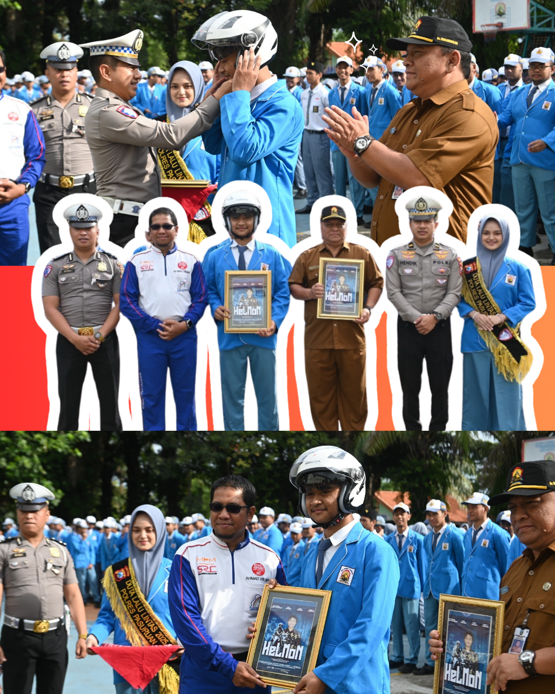 Penghargaan HELMON diberikan oleh Satlantas Polres Pasuruan kepada siswa yang secara konsisten mematuhi peraturan lalu lintas, seperti menggunakan helm berstandar SNI, mematuhi rambu lalu lintas, serta mengedepankan keselamatan saat berkendara. Melalui dukungan MPM Honda Jatim, siswa penerima apresiasi juga mendapatkan helm sebagai simbol kepedulian terhadap keselamatan di jalan raya.